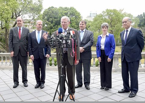 The 19-member delegation led by US Senator James Inhofe, cochair of the US Senate Taiwan Caucus, includes three other senators and one congressman who serve on the US Senate’s and House of Representatives’ armed services committees.