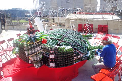 Meanwhile, the Jhu Wang Temple (朱王廟) in Magong’s Shihcyuan Borough (石泉) built a turtle out of beer bottles. Created by artist Chen Fu-chi (陳扶氣), it required 150 cases of beer to make.