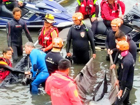 After efforts to rescue three surviving whales failed on Tuesday last week, the bureau, under the advice of Wang Chien-ping (王建平), director of the Marine Biology and Cetacean Research Center at National Cheng Kung University, decided to bring them to shore to save them from dying in the cold weather, it said.