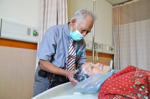 On one such visit, Lee arrived in a dress shirt and a tie, and waved familiarly to those at the nursing station as he walked to a patient surnamed Chen’s room and began taking out a washtub, and various other tools needed to wash hair.