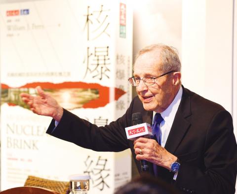 Perry, who served as US secretary of defense from 1994 to 1997 under then-US president Bill Clinton, was on a whirlwind 24-hour visit to Taiwan to promote the Mandarin version of his book, My Journey at the Nuclear Brink.
