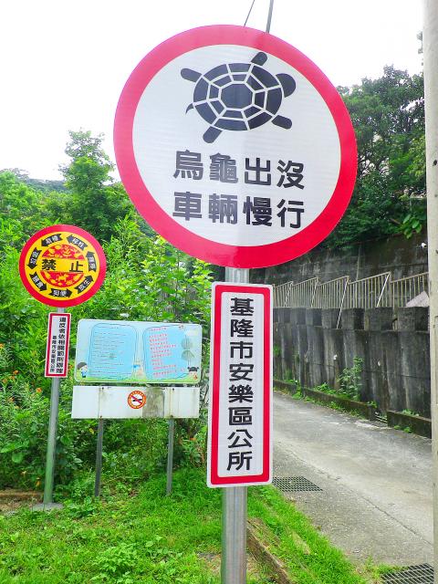 The group urged drivers in Keelung’s Anle District (安樂) to be mindful of the traffic signs and slow down for the turtles, which might be roaming about the streets.