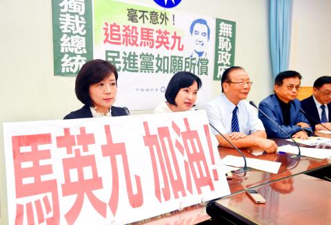 That prosecutors cited Ma asking KMT staff during a KMT Central Standing Committee meeting to compile a report on the transactions and saying that he wanted to “win reputation and gain allies” by approving the sales as reasons for the indictment illustrate the absurdity of the case, KMT lawmakers said, accusing prosecutors of being the Democratic Progressive Party’s (DPP) hit men.