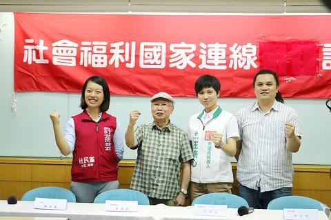 The Social Welfare State Front, a coalition of the Social Democratic Party (SDP), Taiwan Radical Wings and the Green Party Taiwan, yesterday said it aims to win at least three councilor seats each in Taipei, Taoyuan, Hsinchu, Tainan and Kaohsiung in the Nov. 24 elections, and to establish united party caucuses in the cities.