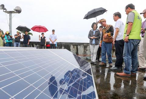 Tsai, who is also the Democratic Progressive Party (DPP) chairperson, was yesterday accompanied by Taitung County Commissioner Justin Huang (黃健庭) of the Chinese Nationalist Party (KMT), DPP Legislator Liu Chao-hao (劉櫂豪) — the party’s candidate for commissioner in the Nov. 24 nine-in-one-elections — and other officials.