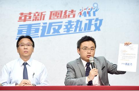 “We think that the commission and the Act on Promoting Transitional Justice (促進轉型正義條例) are unconstitutional and are a product of political wrangling,” KMT Culture and Communications Committee deputy director-general Hung Meng-kai (洪孟楷) said.