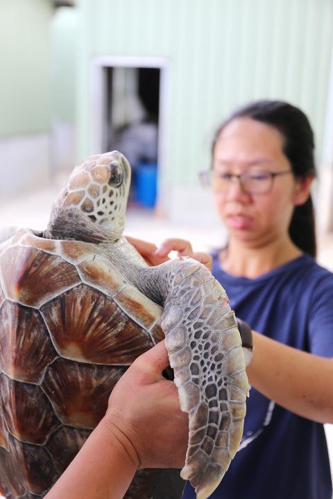 The turtle was found in Liaoluo Port and a blood test revealed that it had elevated creatinine levels, which researchers suspect was caused by a boat striking its shell, the county government said.