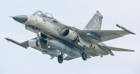One of the twin-seat fighter trainers fired one missile at surface targets in the seas to the southwest of Taiwan, while the other fighter and a Juiyuan drone monitored the exercise and transmitted real-time data to the institute’s Jioupeng Military Base (九鵬基地) in Pingtung County, the official said.