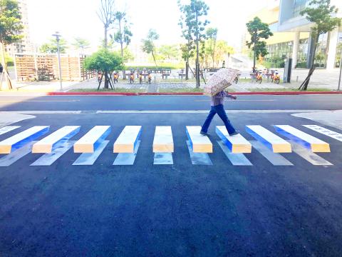 Taipei is testing “3D” crosswalks, Chen said, adding that the New Taipei City Government would explore the possibility of more such designs after evaluating their effectiveness in Taipei and Tamsui.