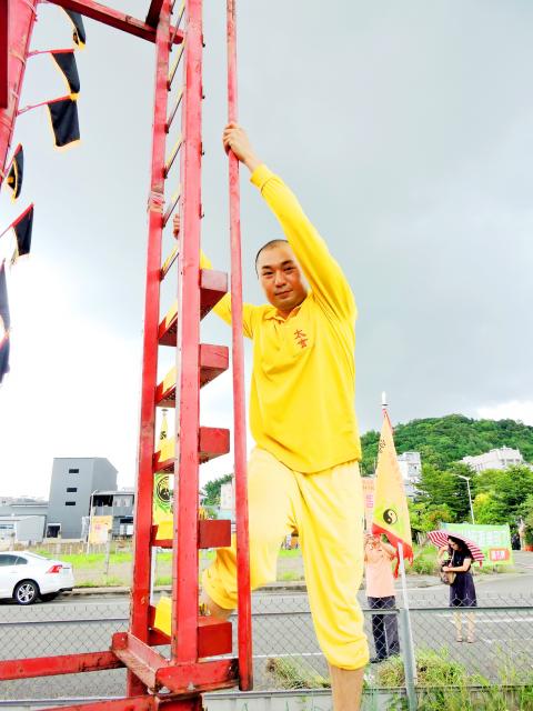 Chinese Wutang Taoist Taixuan Association head Master Hsiao Tao-hsien (蕭道賢) said he has overseen 15 sword ladder-climbing sessions during his 14-year tenure and bestowed priesthood on 500 people who have completed the ritual challenge.