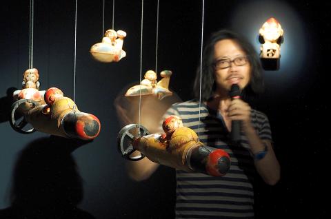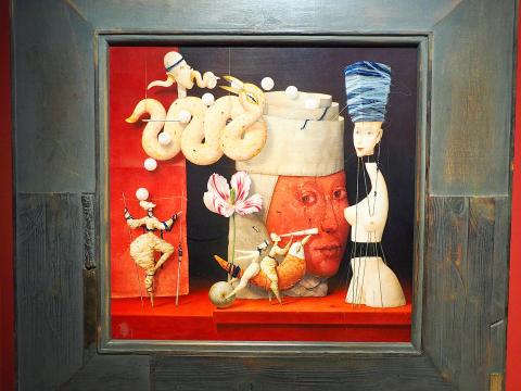 Exhibitions of two very different styles of art were yesterday opened at the Yu Hsiu Museum of Art in Nantou County’s Jioujioufeng (九九峰), with one containing installation art based around the theme “Take Me to the Moon,” while the other features Czech artist Zdenek Janda’s Commedia dell Monde.