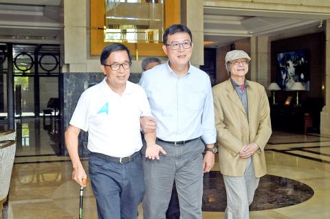 Yao talked to reporters after he walked out of an apartment building with Chen during a surprise morning visit to Kaohsiung, along with Ketagalan Institute president and political commentator Chin Heng-wei (金恆煒).