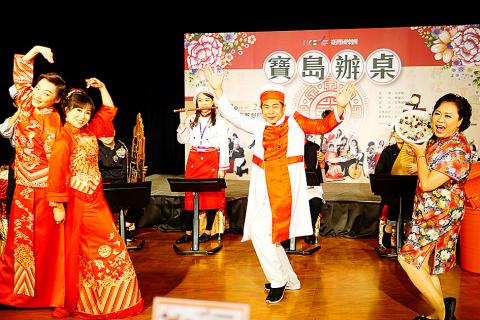 Gezaixi (歌仔戲, Taiwanese opera) performers and the National Chinese Orchestra Taiwan (NCO) are performing today and tomorrow a show, titled Catering Party (寶島辦桌), on Taiwanese bandoh (辦桌, banquet) culture at the National Taichung Theater’s Playhouse.