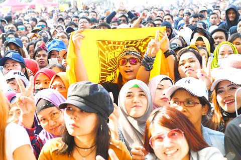 Indonesian pop star Siti Badriah performed at the New Taipei City Plaza in Banciao District (板橋) yesterday as thousands of Indonesians watched her dance and sing.