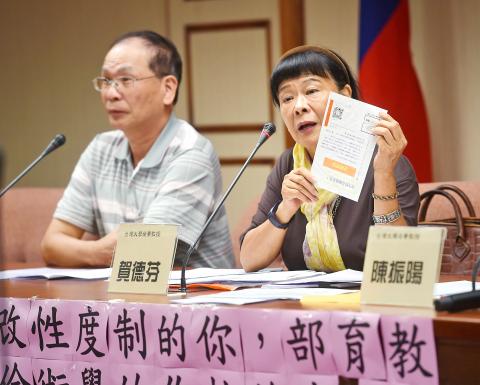 When asked about the legal basis for the ministry to request a re-election, Yeh said: “There is sufficient legal basis in the Constitution, the University Act (大學法) and the Administrative Procedure Act (行政程序法) to allow the ministry to act.”