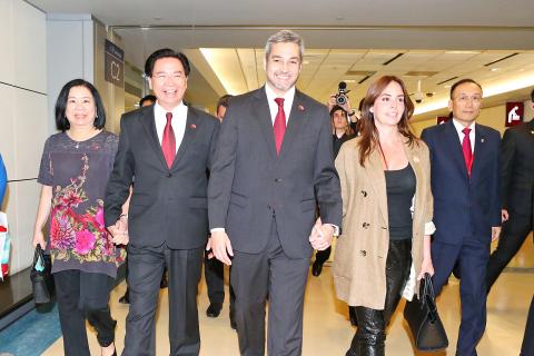 Separately, Paraguayan President Mario Abdo Benitez and his wife, Silvana Lopez Moreira de Abdo, arrived in Taipei yesterday after the government invited them to attend Double Ten National Day celebrations, the ministry said.