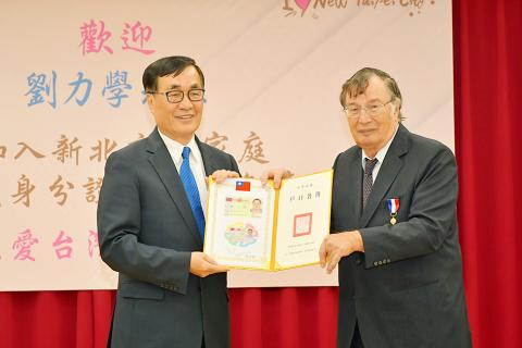 Pierre Loisel (劉力學), a Canadian who has been living in Taiwan for more than 50 years, was naturalized yesterday, becoming the first non-clergy member in New Taipei City to be granted citizenship without having to surrender his own.