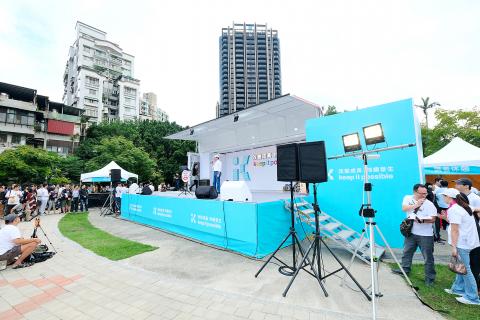 The event was described as a “fun fair,” after Chinese Nationalist Party (KMT) candidate Ting Shou-chung (丁守中) and Democratic Progressive Party (DPP) Taipei mayoral candidate Pasuya Yao (姚文智) protested that the Taipei Parks and Street Lights Office had rejected their applications to hold campaign events in public parks.