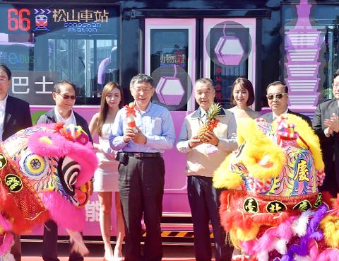 At the launching ceremony yesterday morning, Taipei Mayor Ko Wen-je (柯文哲) said that Taipei is the last of the six special municipalities to launch an electric bus route.