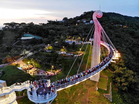 Kaohsiung’s Siaogangshan Skywalk Park (崗山之眼) on Sunday hosted a bridal fashion show and concert, attracting 1,000 people.
