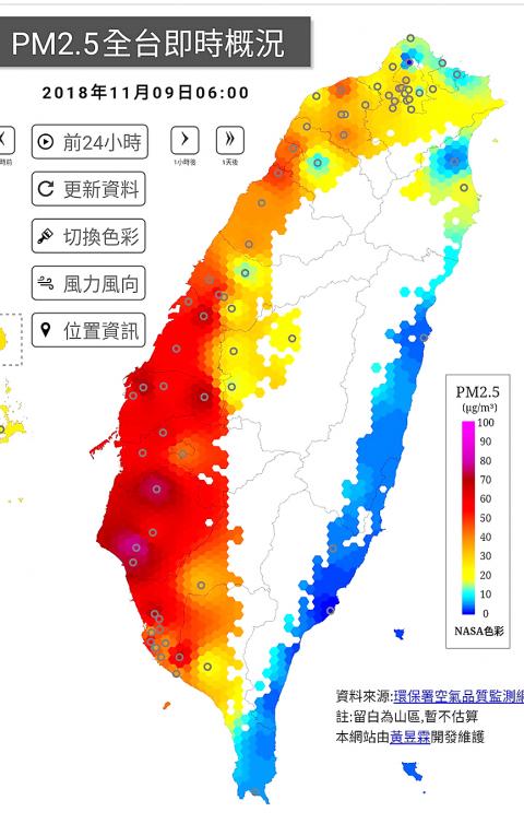 On Thursday, air pollution in the nation was at its worst this autumn, mainly due to domestic pollutants that were hard to disperse in the absence of wind, Department of Environmental Monitoring and Information Management Director-General Chang Shuenn-chin (張順欽) said.