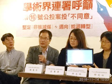 A group of academics yesterday urged voters to reject a referendum seeking to overturn the government’s policy to phase out nuclear energy, citing risks of nuclear disasters.