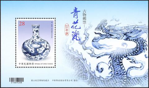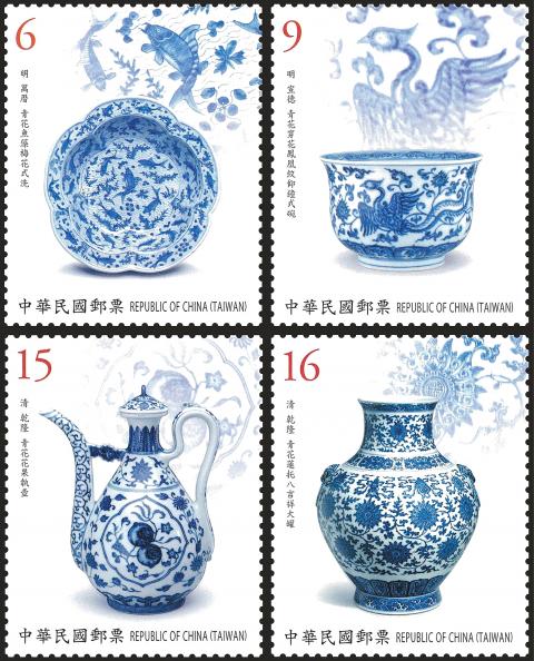 Chunghwa Post has unveiled limited edition postage stamps, featuring the National Palace Museum’s antique blue-and-white porcelain, which are scheduled for release today.