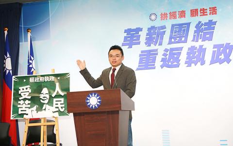 The Chinese Nationalist Party (KMT) yesterday accused President Tsai Ing-wen’s (蔡英文) administration of dragging down the economy and critiqued Tsai’s claim that “foreign forces” are attempting to interfere with Taiwanese affairs via disinformation.