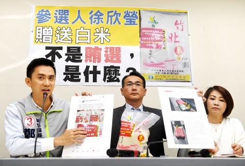 “People have told us that Hsu’s campaign has been handing out rice since July. It is a clear attempt to buy votes,” DPP Legislator Chou Chun-mi (周春米) said.