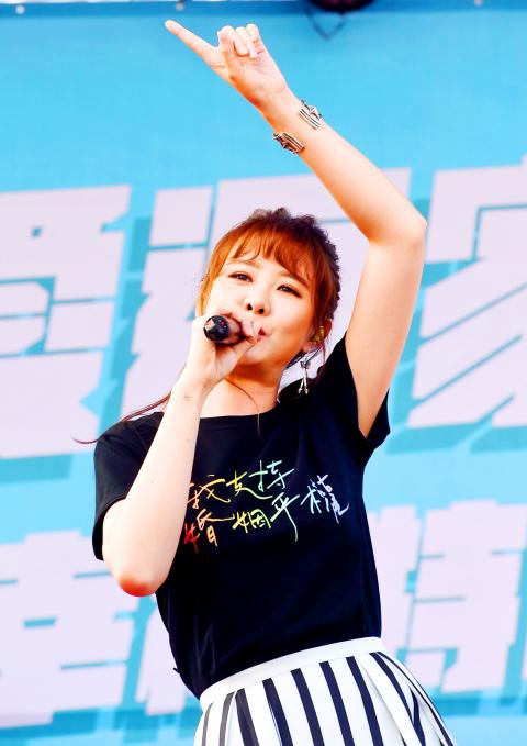 The rally featured performances by a dozen musicians from Taiwan and abroad, including Amber An (安心亞), Tai Ai-ling (戴愛玲), Lotus Wang (王彩樺), death metal band Chthonic and Hong Kong singer Takki Wong (王若琪).