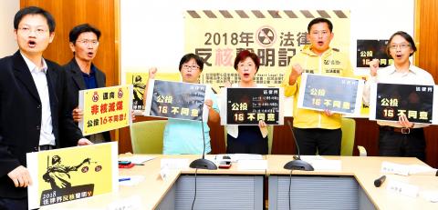 The 2002 Basic Environment Act (環境基本法) stipulates that the government must propose plans to make Taiwan nuclear-free, but the 2025 timeframe was last year written into the Electricity Act, association lawyer Tsai Ya-yin (蔡雅瀅) said, adding that no delay should be allowed.