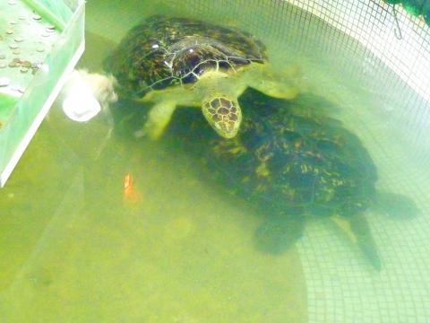 The temple in 1986 began raising sea turtles that were accidentally caught by fishermen and has been allowed to keep them, because the Wildlife Conservation Act (野生動物保育法), promulgated in 1989, was not retroactive, she said.