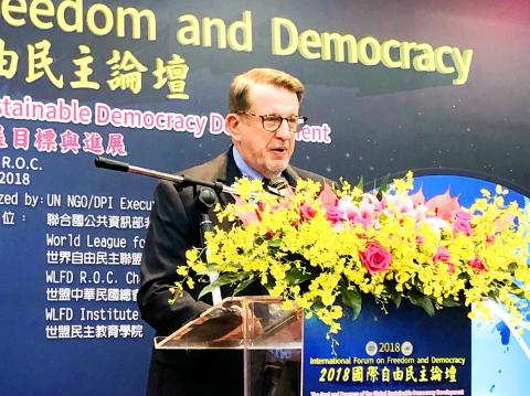 In his opening address at the International Forum on Freedom and Democracy in Taipei, Bruce Knotts, executive director of the Unitarian Universalist Association’s UN office, a non-governmental organization (NGO), said that such issues “should never be put to a vote as Taiwan has just done with regard to same-sex couples.”
