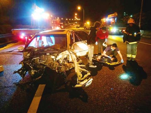 A 22-year-old man surnamed Lee (李) caused a fatal highway accident yesterday morning that left three people dead and six injured, Miaoli County police said, adding that Lee was found not to have a driver’s license.