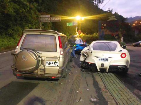 Technicians at the Ferrari dealership in Taipei said the combined value of the four Italian supercars is more than NT$60 million (US$1.95 million) and it would cost an estimated NT$10 million to repair them.