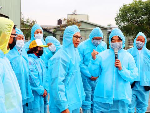 Following President Tsai Ing-wen’s (蔡英文) visit to Yunlin County hog farms on Saturday, Lai yesterday visited Rueising livestock farm in Cingshuei District (清水) to inspect processes meant to reduce the chances of infection.