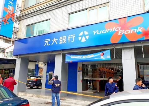 A middle-aged man wearing a red baseball cap and a dark jacket entered Yuanta Commercial Bank’s (元大銀行) branch in Taichung’s Salu District (沙鹿) at about 12:40pm yesterday, eyewitnesses said.