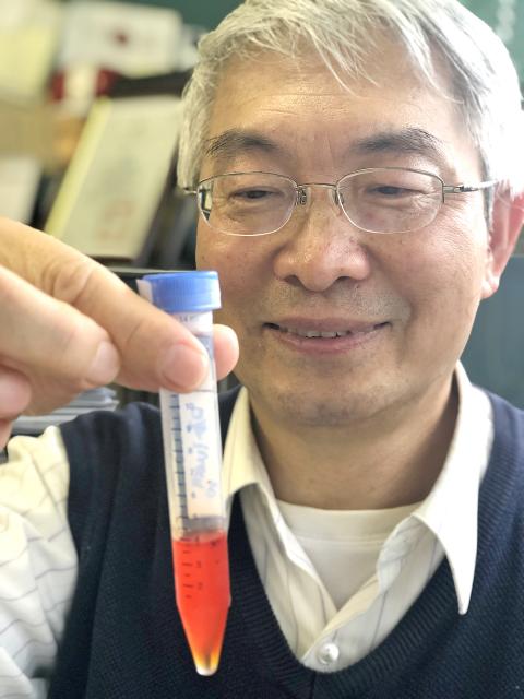 The red pigment prodigiosin could have cosmetic benefits, such as reducing dark spots and lightening a person’s complexion, Tatung University biological engineering professor Will Chen (陳志成) said this week.