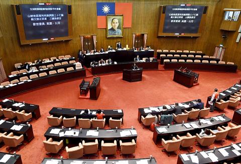 The KMT caucus filed a motion to cut by half the NT$18.61 million budget requested by the Ill-gotten Party Assets Settlement Committee, which was opposed by the DPP.