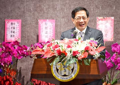 National Taiwan University (NTU) professor Kuan Chung-ming (管中閔) took office as the university’s president at a ceremony yesterday amid lingering concerns over his controversial election.