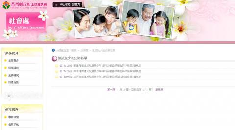 Saul Peng (彭盛韶), director of the Banciao District (板橋) branch of the NPP’s New Taipei City chapter, yesterday said that because of the way information was displayed on the Social Welfare Department’s Web site, it was impossible to find records even from as recent as 2017.