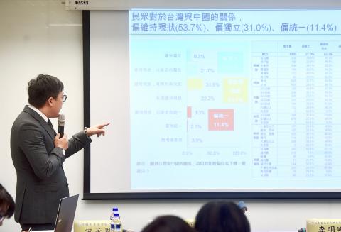 Of the respondents, 53.7 percent said that they support maintaining the cross-strait “status quo,” 31 percent said they support Taiwanese independence and 11.4 percent said they support unification with China, the foundation said.