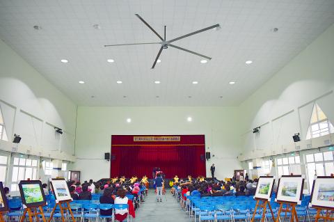Guantian Elementary School in Tainan on Wednesday received an industrial-grade ceiling fan for its student activities center.