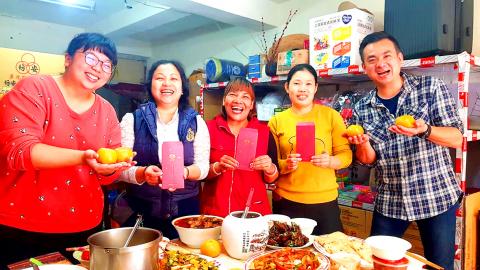 After learning of their predicament, two social workers at the Taiwan Fund for Children and Families’ Yunlin branch — Wang Yao-ching (王耀慶) and Lee Hsin-wei (李欣薇) — invited the three to a weilu (圍爐) — a banquet for family members on Lunar New Year’s Eve.