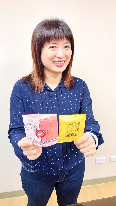 Democratic Progressive Party (DPP) Legislator Frida Tsai (蔡培慧) chose teabags filled with Taiwan-grown Assam tea to highlight her rural roots and farm-worker activism.