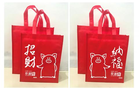 For his supporters, he decided on a red shopping bag illustrated with a pig and a sample of his calligraphy that reads zhao cai (招財, “welcoming prosperity”), he said.