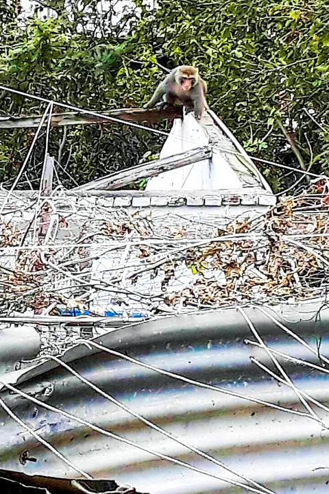 Macaques in the area have been moving into settlements from the mountains, Township Office Deputy Chairperson Pai Teng-ko (白登科) said, adding that as many as 30 macaques could be seen gathering along mountain roads at certain times.