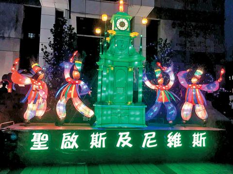The Berkeley Memorial Clock, which is located in Basseterre, the capital of the Twin Island Federation of Saint Christopher (Saint Kitts) and Nevis, alongside colorful masquerade dancers is lighting up the Taipei City sky at this year’s 2019 Taipei Lantern Festival.