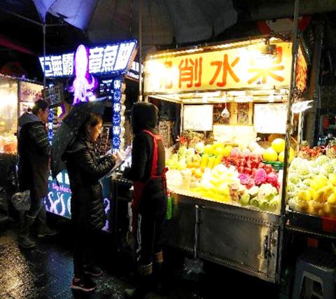 Several incidents of overpricing by mobile fruit stands were reported last month and subsequently confirmed by night market management, Taipei Department of Legal Affairs Consumer Protection Officer Ho Hsiu-lan (何修蘭) said.