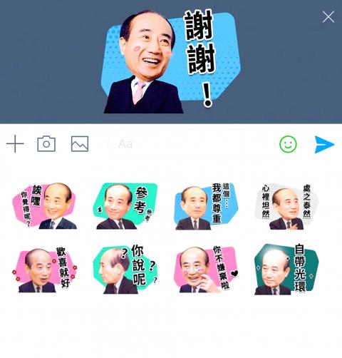 New Taipei City mayor Eric Chu (朱立倫), another KMT presidential hopeful, last month also launched Line stickers featuring himself.